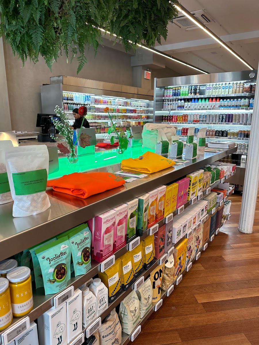 This is a grocery store to buy hard to access items. They sell nuts, milks, chocolates, chips, coffee drinks, apparel, cheeses and so forth. Very few items overlap with pantry of whole foods, but those which do - the price point for most products is about $1-3 higher than whole foods. To give a sense of fanciness - the examples of items in each category are pistachio kernels, pistachio milk, sake chocolates, rose flavored potato chips. This shop is not for the masses. It is for people with a certain taste and preferences which demands a high purchasing power. I would recommend a visit to simply browse and pick a few items for novelty. Fruits, and veggies are reasonably priced. They also have a coffee bar. They also sell jackets which claim to protect against electromagnetic waves. The best and perhaps most useful item is Raw milk. They have partnered with Amish dairy and sell A2 raw milk and other dairy products on pre-order and pickup only basis. Overall, a very cool grocery store with high quality, unique products.